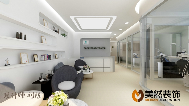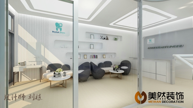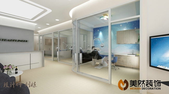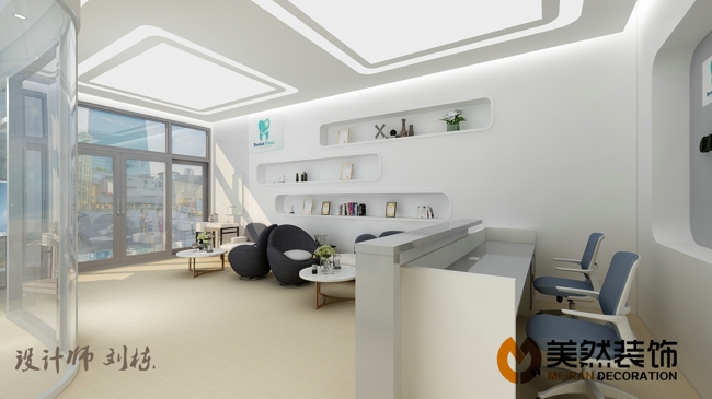 此牙科診所位于涿州錦繡范陽(yáng)底商,建筑面積230平米,共分候診區(qū)、兒童診室、VIP診室,普通診室,種植室、消毒間,牙模操作間等,配置比較齊全,檔次較高,由涿州美然裝飾客服部經(jīng)理劉棟親自操刀設(shè)計(jì)。